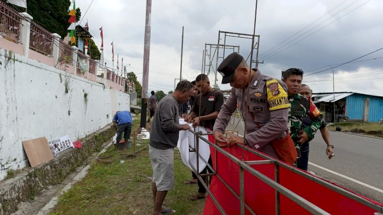Bripka Damasus S. Sunding, Bhabinkamtibmas Kecamatan Langke Rembong, Gotong Royong Pembangunan Gapura dalam Rangka Peringatan HUT Ke-78 Republik Indonesia