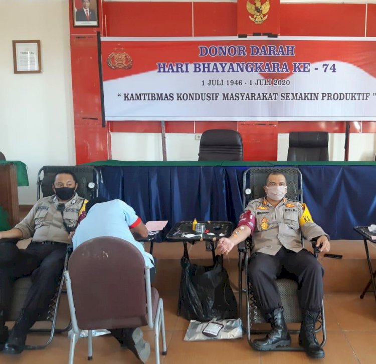 TRIBRATANEWSMANGGARAI.COM - Kepolisisan Resort Manggarai menggelar bakti sosial (Baksos) donor darah dalam rangka hari Bhayangkara ke - 74 di Aula Polres Manggarai (22/06), pagi.