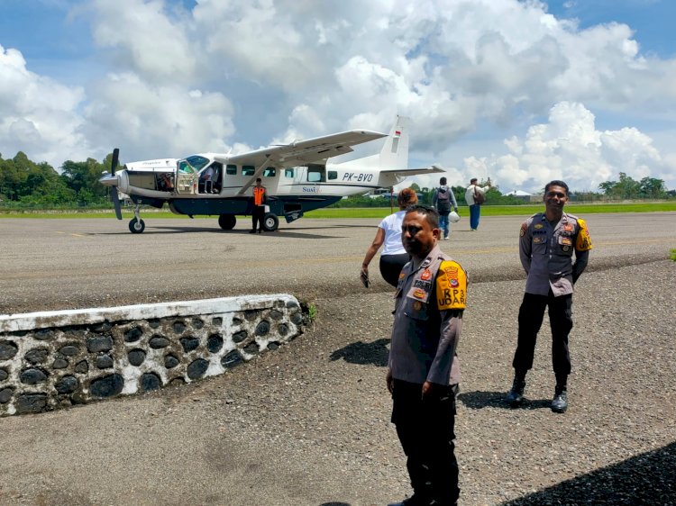 KP3 Udara Frans Sales Lega Ruteng Laksanakan Pengamanan Pesawat SUSI AIR